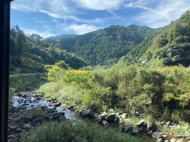 川沿いの景色を楽しむなら、行きは右側、帰りは左側の席がオススメ◎