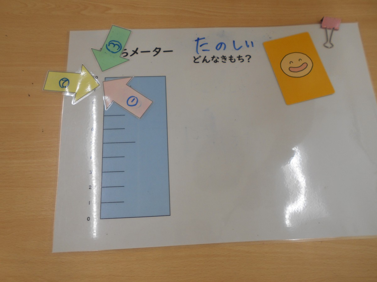 遊びの終わりには「きもちのメーター」で本人が今日の活動をどう感じたのかを教えてくれます。